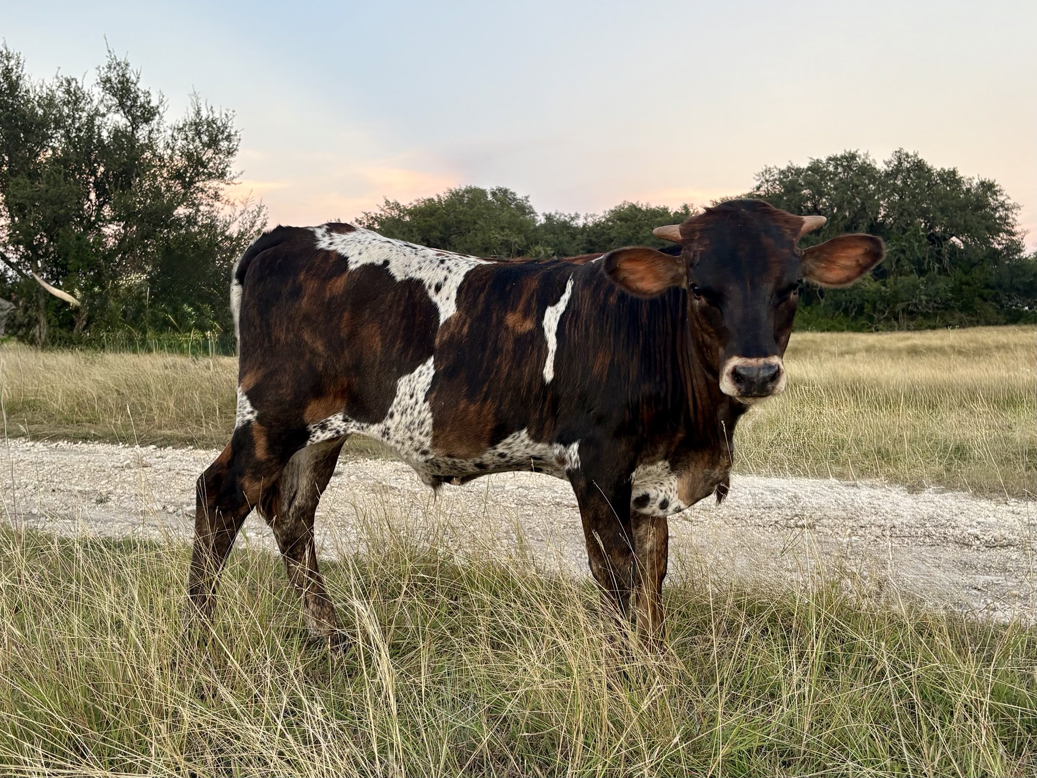 Vindicator, Horseshoe J Important, Cut'N Dried, Jamboree, Juma, Jamakizm... these are just some of the names you'll find in this young bull's pedigree. Apart from incredible genetics, Lexington's body is extremely uniform. His horn direction is indicative of massive 1st and 2nd year growth reminiscent of many of Cut'N Dried's male progeny. We are anxious to see how this guy develops!