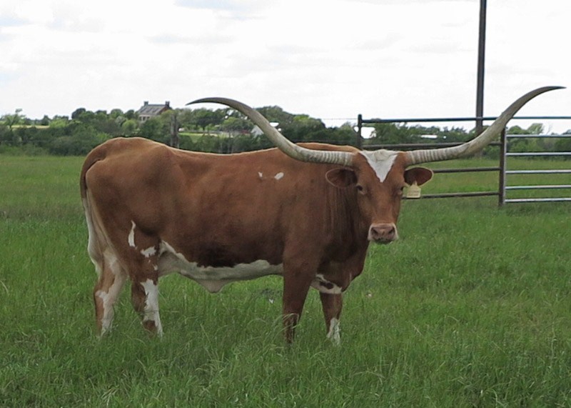 She is the dam of 85"TTT BL Awesome Blossum,80" TTT Rio Whiskey and many more incredible longhorns. We use her genetics with the best bulls in the industry. Over 100" total horn and over 200" composite horn! Still producing one great calf after another, a super cow.